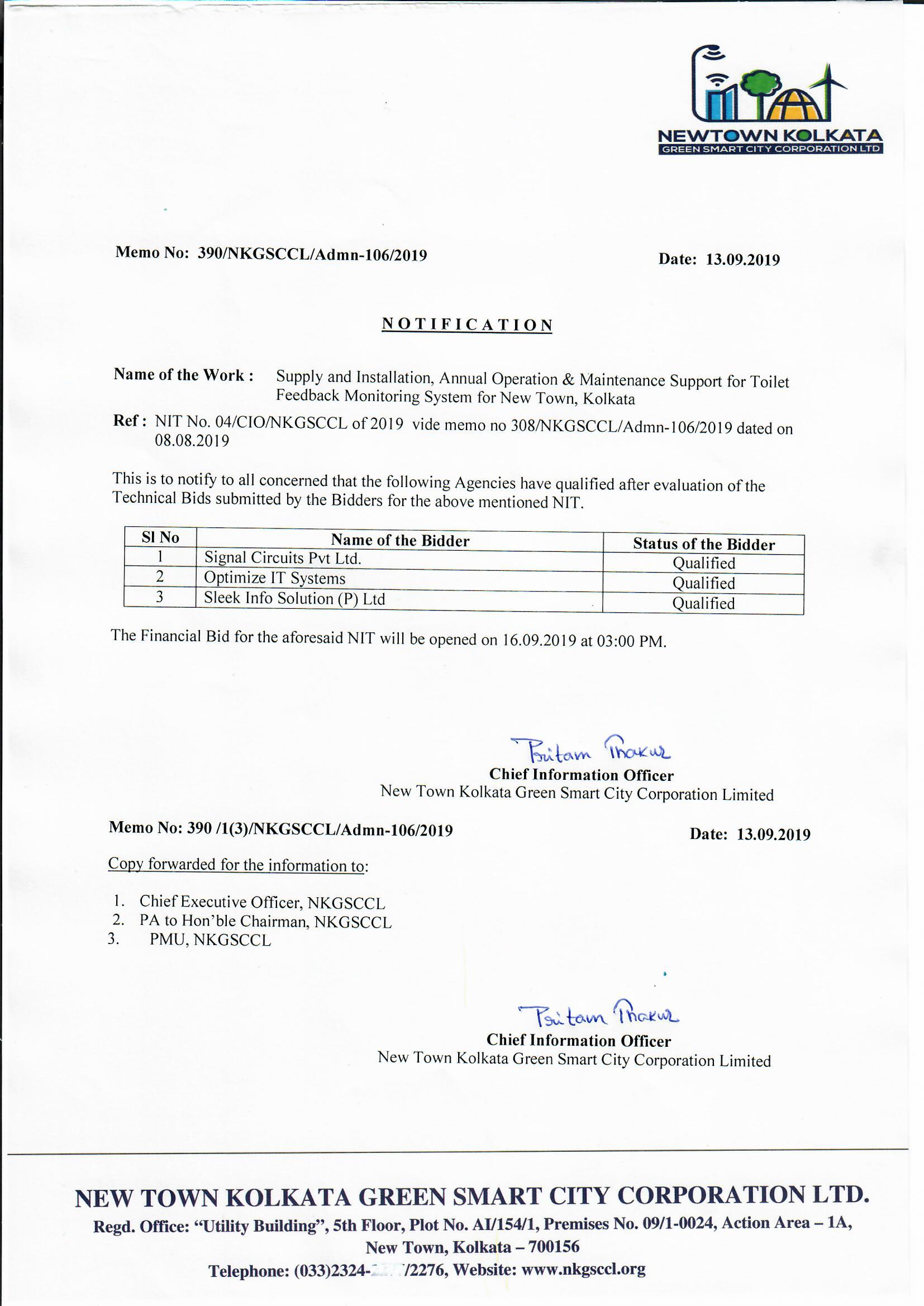 1. Maintainance of Prefabricated Single Tank Based Modular Capacity 05 TPD Bio-Gas-Plant in Connection with Solid Waste Management at Newtown, Kolkata under NKDA for 02 Years. 2. Operation & Maintenance of Weigh Bridge (Capacity 60 MT) at Block CG in Action Area -1, New Town, Kolkata for 02 (Two) years. |